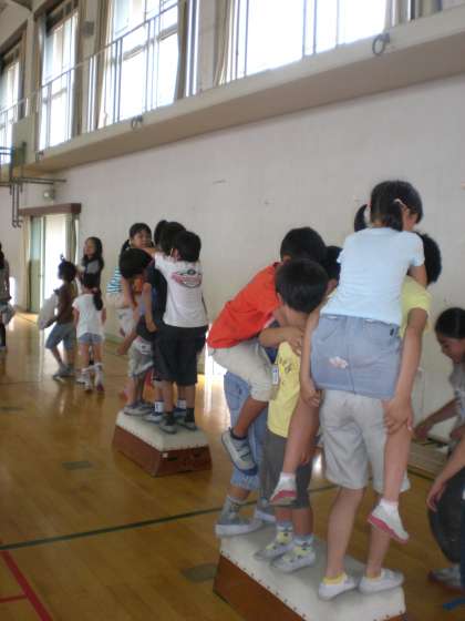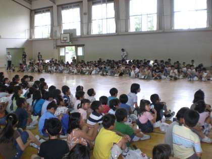 先週の火曜日(7/7)に行われた『夏の集会』。1〜6年の異年齢グループが,12の遊びコーナーを回って得点を競いました。