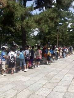 貸切りバスで、先ほど奈良到着しました。駐車場から法隆寺に向かって歩きます。