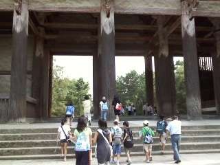 南大門をくぐって東大寺に別れを告げました。クーラーの効いたバスが待ち遠しいです。一路学校へ。