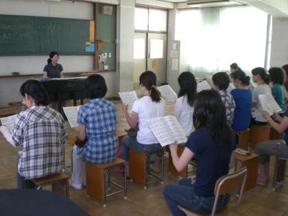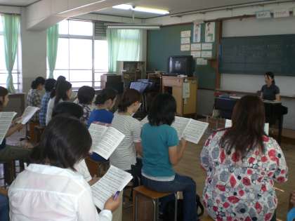 7/7(火)から今年も始まったPTAコーラス。この暑さの中で,4階の音楽室からさわやかな歌声が響いていました。今日は,『カントリー・ロード』の練習です。