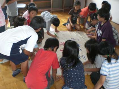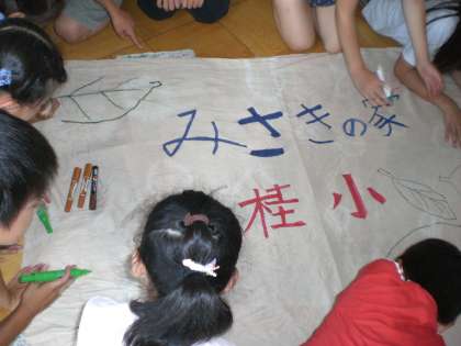 今日(7/15)から,4,5年の実行委員さんたちがその旗の製作に取りかかりました。