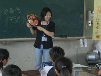 (写真上)松井(6年)『おたまさんのおかいさん』⇒5−3の教室で。