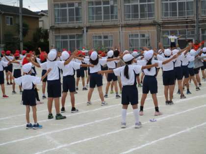 たいよう学級は今年度、朝の体作りで雨天時等で朝ランニングができない日は、ラジオ体操第一を練習していたので、上手にできていました。