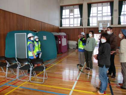 地域の方たちが、自主防災訓練を行いました。地域の安全安心のために、多くの方たちが協力して、様々なブースを設置したり、万が一の時を想定しての確認を行ったりしました。各地域から学校への避難の仕方についても実際に移動して体験するなど、実りある訓練となりました。