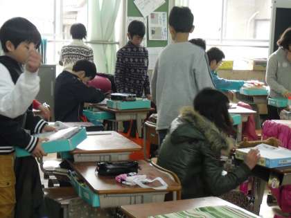 明日から冬休みに入るということで,今日は年末の大掃除をしました。いつもの掃除の時間ではきれいにできなかったところを拭いたり片づけをしたり, がんばって掃除をしました。