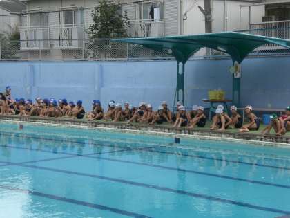 (写真下)プールが始まって,最初に「人間洗濯機」をしている様子