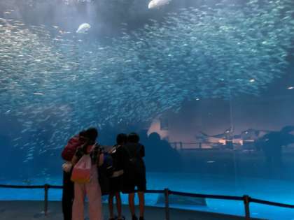 水族館の見学です。名古屋港水族館でしか見れない生き物も多くて、興味津々で見ています。