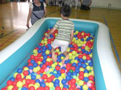 体育館でも幼児・児童対象の遊びコーナーがたくさんあります(実行委員会・民生児童委員)。
