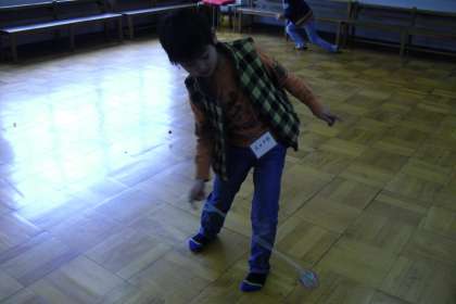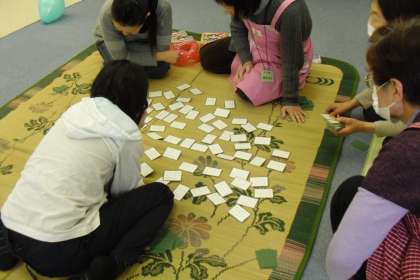 今年度最後になる地域行事の「昔遊び」がありました。社会福祉協議会のみなさんに,百人一首やコマ回しやけん玉など昔から楽しまれている遊びを教えてもらいました。