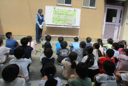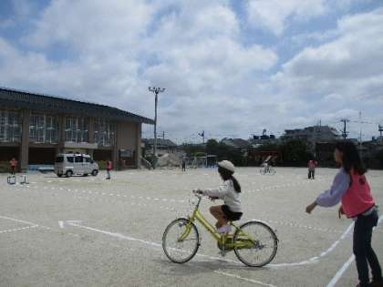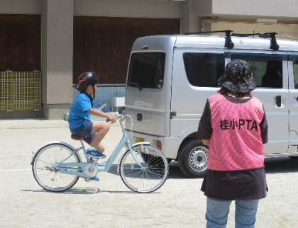 21日(火)に西京警察の方から自転車教室を開催していただきました。子どもたちは、事前に学科試験を受けているのですが、実際に自転車で走ってみると意外と「あれ、この場合はどうすればいいのかな。」と不安になることもあったようでした。しかし、各ポイントで警察や保護者の方々のアドバスを受けて、無事実技訓練を終えることができました。