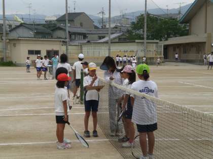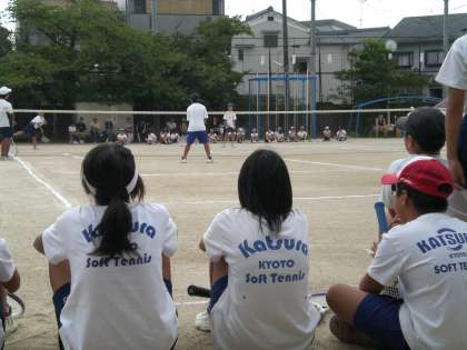8/22(土)に桂東小を会場に行われた「京都市小学校部活動全市交流会」では,本校のソフトテニスで頑張っている4〜6年のみんなが,その成果を発揮しました。当日は,本校以外に桂東,樫原,境谷,福西,新林の小学校が集まって熱戦を繰り広げました。
