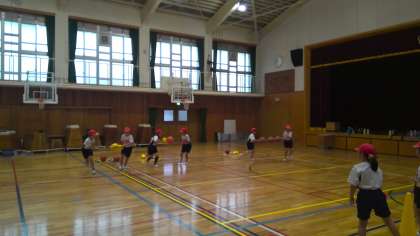 今日は、雨だったので体育館で