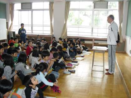 4年生が道徳の学習でランニングの大八木コーチからお話を聞きました。テーマは「あきらめない心」。自分の経験から,「どんなことでも努力をすれば必ず結果はついてくる」というお話を聞きました。高学年に仲間入りした4年生が,今日の話を聞いて,自分の生き方にどのように生かせるか楽しみです。