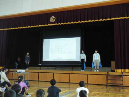 次に、本部委員会、環境美化委員会からの発表を聞きました。