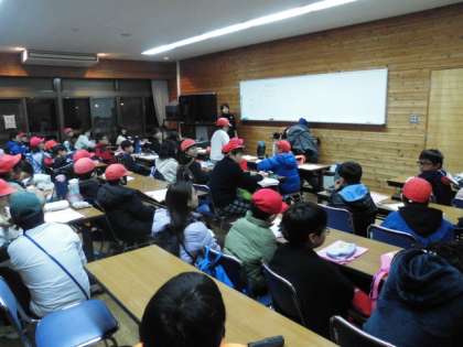 2日目の活動を振り返りました。できたこと、明日がんばりたいことを、しっかりと振り返っていました。自然の素晴らしさ、協力して達成することのよさなどについて、子どもたちが話していました。