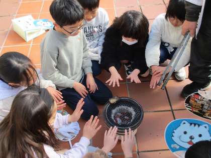 七輪でおもちを焼きました。