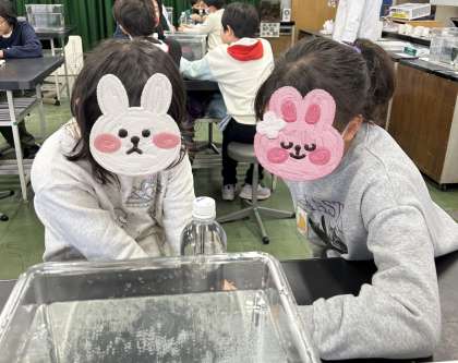 イモリを触ったり、不思議な鏡に映る自分を見たり、理科の工作をしたりしました。