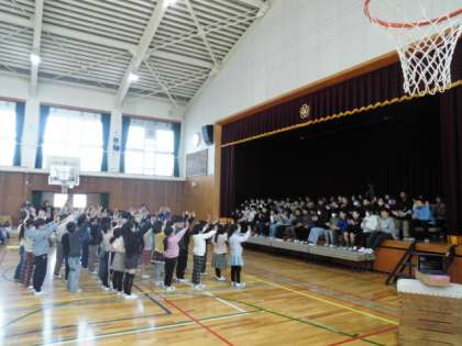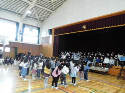 各学年から6年生へ、お祝いと感謝の気持ちを込めて発表しました。
