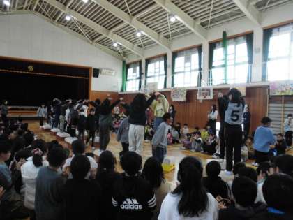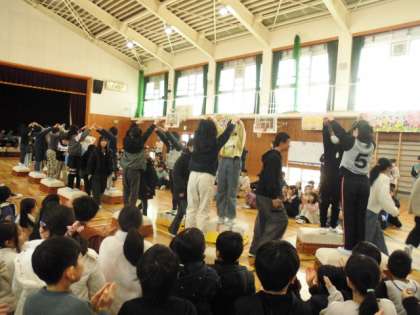 全校のみんなで花道をつくり、6年生の卒業をお祝いしました。