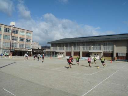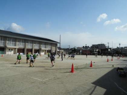1校時、運動場で6年生が体育の学習をしていました。寒さに負けず、一所懸命にボールを追いかけていました。