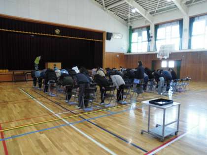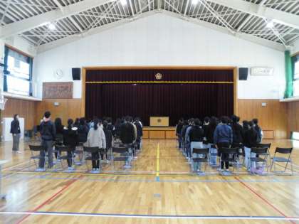 10日(月)の4校時に卒業式練習をしました。今日から体育館での練習を始めました。