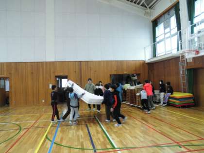 12日(水)に、5年生が卒業式の会場になる体育館の準備をしました。