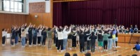 学校長の話をしっかりと聞きました。