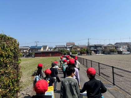 社会科「わたしたちのまち」の学習で校区探検に行きました。