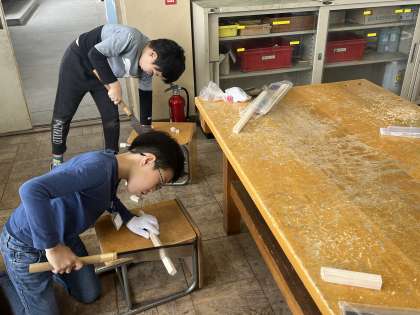 4年生では、図画工作科でのこぎりを使用して木材を切りました。初めてののこぎりに苦戦しながらもチャレンジしていました。回数を重ねるごとにどんどん上手く切ることができ、喜んでいる姿が見られました。切った木材から作る作品が楽しみです。