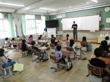 避難訓練の前に、火災が起きた時の安全な行動について確認する学習をしました。その後、放送の指示に従って、避難をしました。