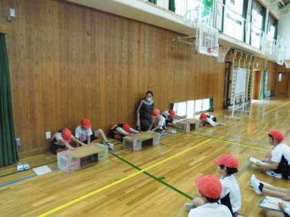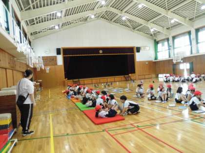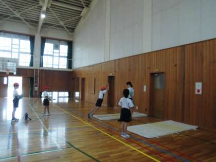 今日は、4年生が体育館で新体力テストに取り組んでいました。