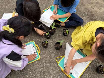 理科の学習で植えたホウセンカとヒマワリが発芽しました!