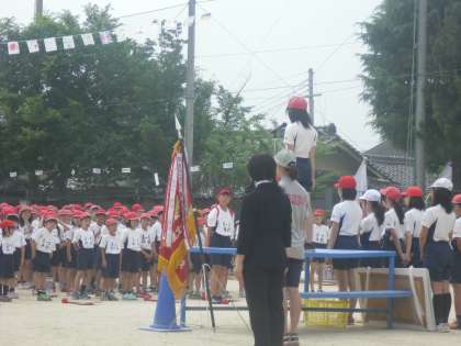 天候に恵まれ,気持ちのいい朝を迎えました。今日は運動会です。開会式が始まりました。
