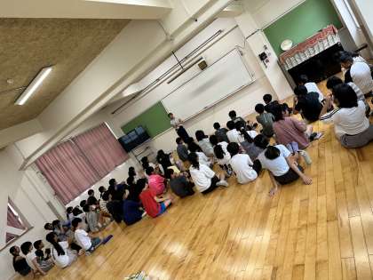 3時間目にプレイルームで、学年集会を行いました。
