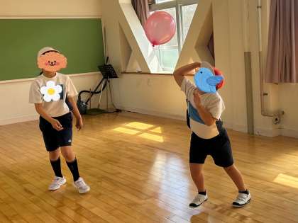 みんなでふうせんバレーをしました。とても盛り上がりました。楽しさ満点でたくさん体を動かせるので子どもたちに大人気です。