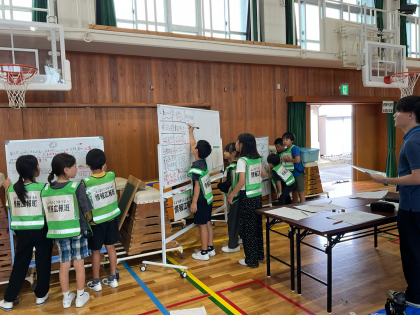 4年生では,総合的な学習の時間として西京区役所の方に教えていただきながら、「避難所開設訓練」を行いました。各役割に分かれて、課題に取り組み、それぞれの役割で学びが多くあり、貴重な体験となりました。また、今までの学習を通して疑問に思ったことについても教えていただくことができました。
