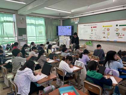 食の学習で、バランスの良い食べ方について、栄養教諭の池端先生に授業をしていただきました。