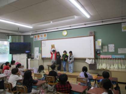 3年生の国語の「おすすめの一さつを決めよう」の学習で、各グループで話し合いをして決めたおすすめの一さつを、1年生に紹介しました。