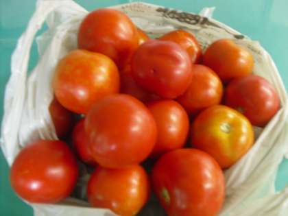 1年生の畑にトマトがいっぱい実りました。真っ赤に熟したトマトはとってもおいしそう。これは,ジュース用のトマトなのですが,味はとっても濃厚です。おいしいジュースができそうです。