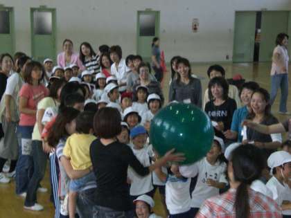 (写真上)『じゃんけんサッカー』 (写真下)『玉送り』