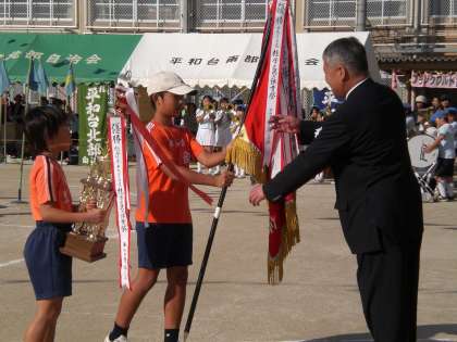 (写真中:前年度優勝旗返還)