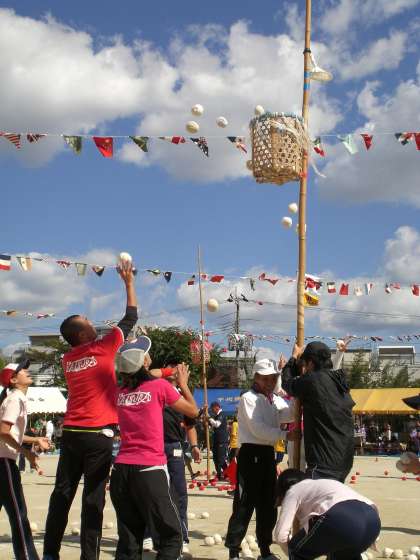 先生も玉入れに夢中!