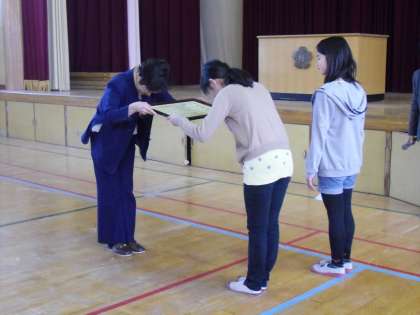 秋に贈呈された「人権の花」の球根がきれいに咲きそろいました。今日は,その事への感謝状をいただきました。