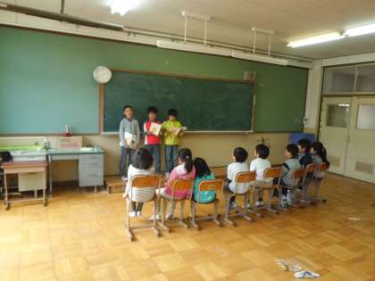 5月2日(木) 4年 3年生に「音読劇」を披露しました。