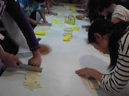 ・5月10日(金)金比羅山の後は、いよいよ、うどん打ち体験です。