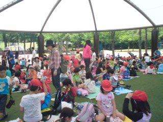 ・5月13日(月)子ども達は宝ケ池「こどもの楽園」に着き、楽しくお弁当を食べています。
