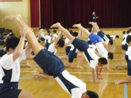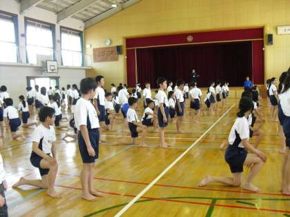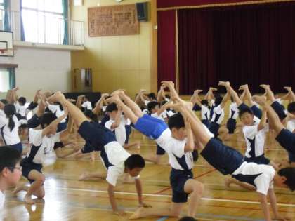 6月8日は運動会です。その日に向けて,5・6年生が組体操の練習を始めました。今は一人技と2人技が終わり3人技に取り組んでいます。毎日少しずつ練習を重ねて本番を迎えます。