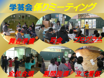 今日(11/9)の6校時は,学芸会の各係の打合せでした。学芸会を裏方から支える重要な係です。6年生も先生たちと真剣にミーティングをしていました。