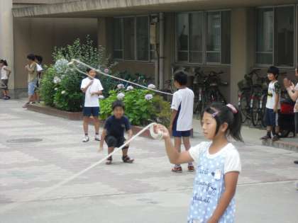 3回目のなかよしタイムがありました。体育館では風船バレーをして遊びました。運動場や中庭では,6年生が遊びを考えました。