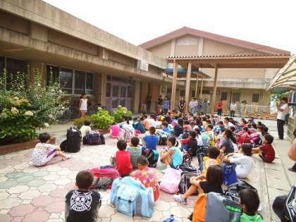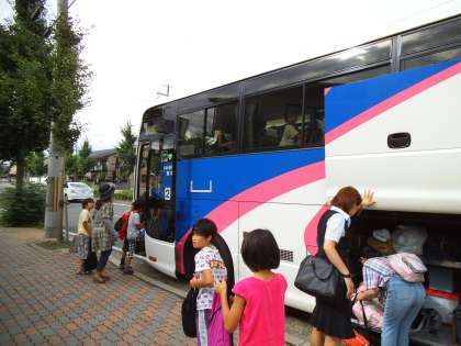 ・7月16日(火)4年生は7時40分に学校で出発式を行い,8時に桂川街道から貸切りバスでみさきの家に元気に出発しました。これから2泊3日のみさきの家野外宿泊学習が始まります。
